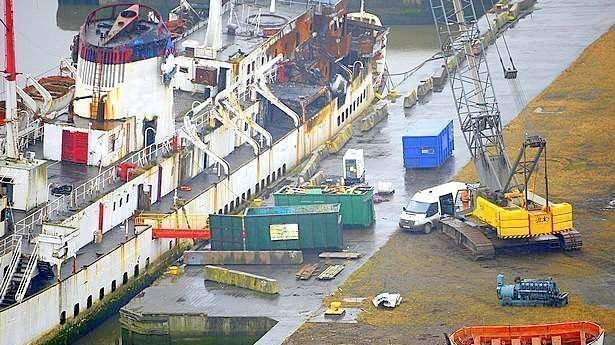 Scrapping Is About To Start, Some Items have been removed, ie Lifeboats, and Generator, and ABLE UK, MIDDLESBROUGH COUNCIL, AND THE ENVIRONMENT AGENCY, TEESSIDE PORT AUTHORITIES, hope to have her scrapped, by Summertime, Unless............!!!!!!!!~ Please continue to sign this petition, to register your distaste at their needless actions, especially since She is being scrapped, at our, taxpayers Expense, A National Historic Ships UK Core Listed Vessel, A Government Body, as well. Thank you. SS TUXEDO ROYALE was The Boat, SS DOVER, SS EARL SIWARD, SS SOL EXPRESS :::~~~ Picture Is Current.