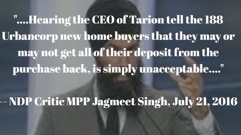 Mise à jour sur la pétitionEnd Tarion’s new home warranty monopoly NOW: Give Ontarians a choice!MPP Singh Speaks out about the Urbancorp Debacle and Tarion's Role