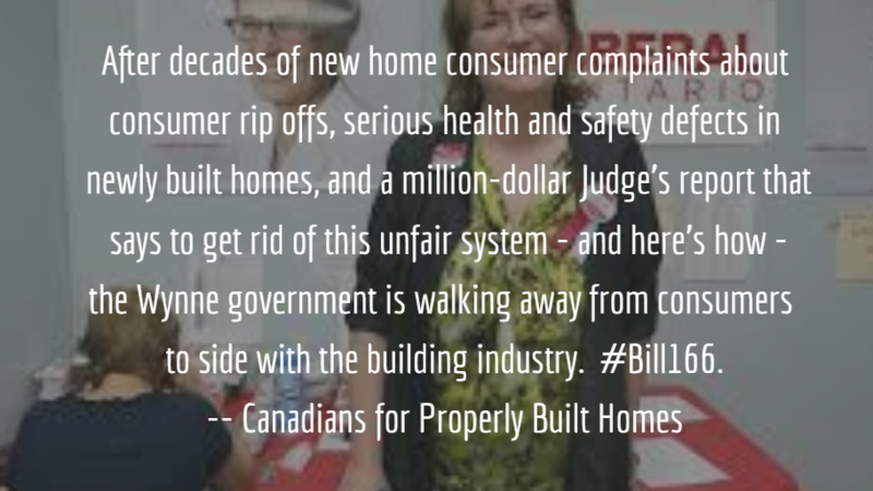 Despite their slogans like "consumers first" and "Ontario's fair housing plan", with Bill 166 the Wynne government is walking away from consumers to side with the building industry.