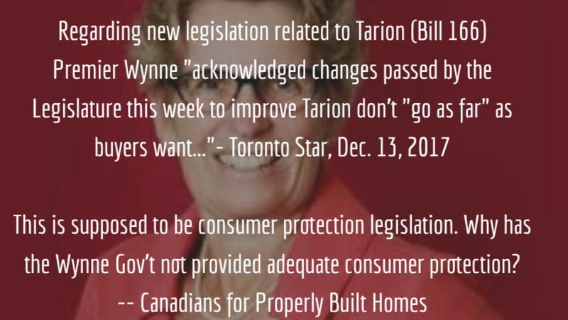 Petition updateEnd Tarion’s new home warranty monopoly NOW: Give Ontarians a choice!Premier Wynne: There's more work to do re new legislation for Tarion