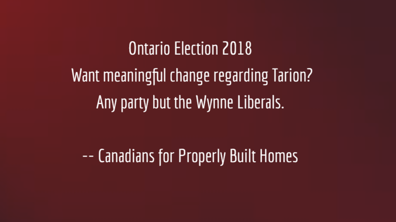 Petition updateEnd Tarion’s new home warranty monopoly NOW: Give Ontarians a choice!Election 2018 - Want meaningful change re Tarion? Any party except the Wynne Liberals