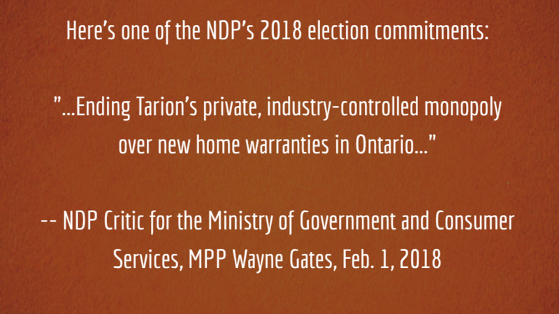 Actualización sobre la peticiónEnd Tarion’s new home warranty monopoly NOW: Give Ontarians a choice!It's election time in Ontario - What the NDP will do re Tarion's monopoly if elected!