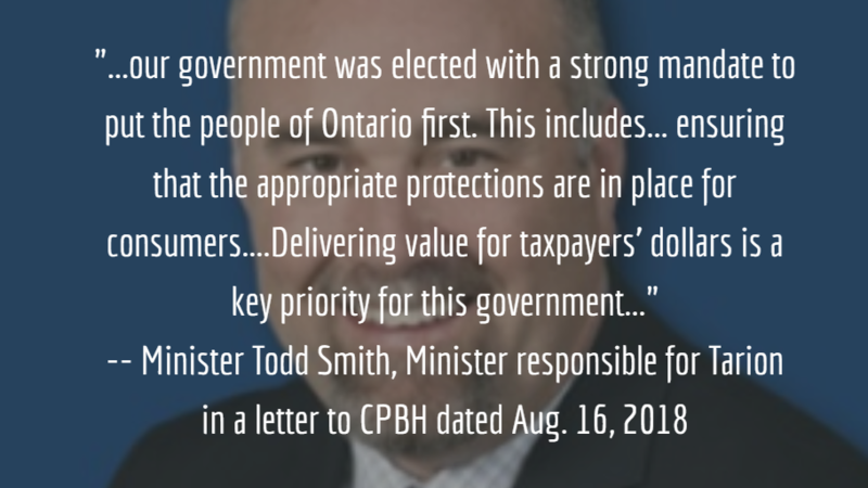 CPBH has been communicating with the new Minister responsible for Tarion, Minister Todd Smith, about the need to end Tarion's monopoly.