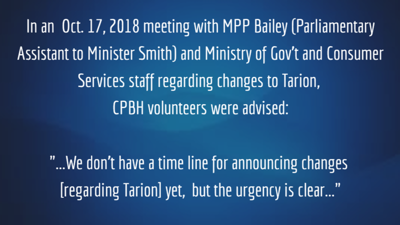 We finally have a first indication from the Ford Government about upcoming changes to Tarion. While no details were provided, MPP Bailey, who is Minister Smith's Parliamentary Assistant, advised CPBH volunteers yesterday that changes to Tarion are indeed in the works.