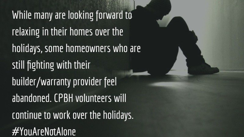 Our volunteers are working over the holidays. Our contact information is on our web-site: www.canadiansforproperlybuilthomes.com