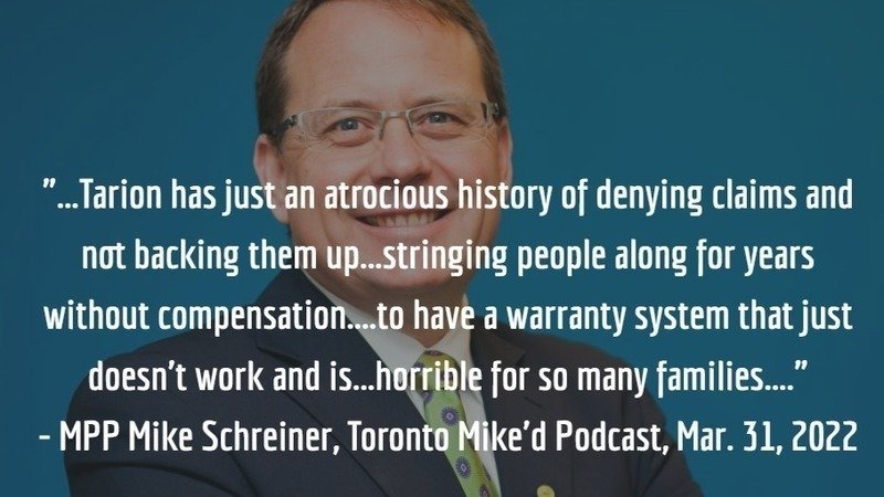 Petition updateEnd Tarion’s new home warranty monopoly NOW: Give Ontarians a choice!Looking for answers from Tarion? Want to raise a concern? Tarion's APM is June 20, 2023, 7:00 pm