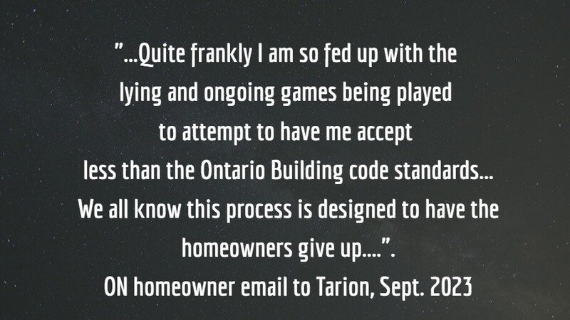 Despite all of the scathing reports about Tarion over the years, it's hard to believe that so many homeowners have to continue to fight to get what they already paid for - a home that at least meets the minimal Ontario Building Code.