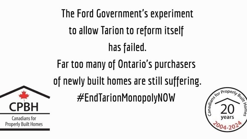 Petition updateEnd Tarion’s new home warranty monopoly NOW: Give Ontarians a choice!An Ontario election is anticipated any day - ask candidates if they will end Tarion's monopoly