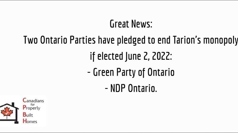 What can you do? When candidates ask you for your vote, please ask if their party will end Tarion's monopoly if elected.