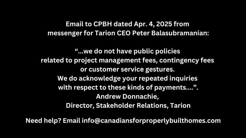 Petition updateEnd Tarion’s new home warranty monopoly NOW: Give Ontarians a choice!Tarion continues to operate in secret re key payments to some homeowners