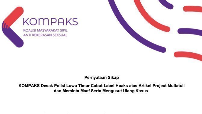 Koalisi Masyarakat Sipil Anti Kekerasan Seksual (KOMPAKS) memberikan penyataan sikap yang Sahabat bisa baca di: http://bit.ly/PernyataanSikapKOMPAKSLuwu