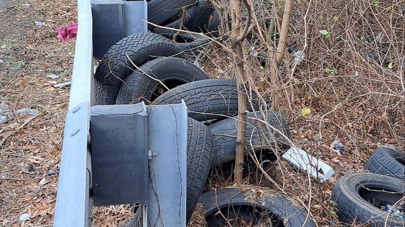 Bad news: the tires that DPW said they removed from along 295 over the weekend in response to our petition...are still there.