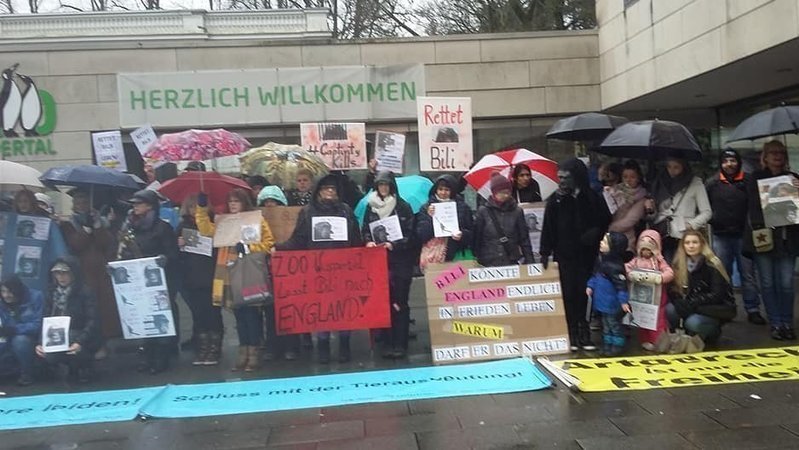 Heute fand die Veranstaltung für Bili vor dem Zoo Wuppertal statt.Viele Menschen und Medien waren anwesend, u.a. auch das Kamerateam von Stern TV .Stern TV hatte Bili's Eingliederung in die Bonobo Gruppe im Zoo Frankfurt 2009 begleitet.