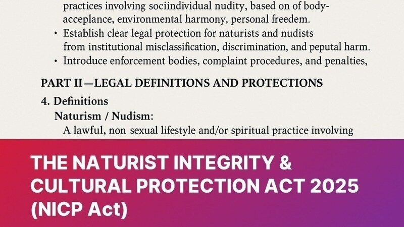 ...we need the NICP Act. It is the only proposed legislation that gives naturists the legal tools, cultural recognition, and enforcement structure to defend themselves and grow without fear.