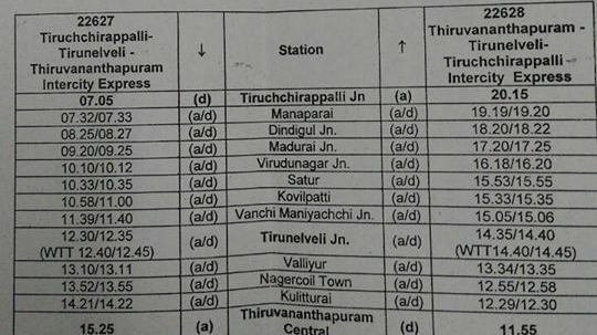 newly announced train - Trivandrum/Trichy through Nagercoil Town