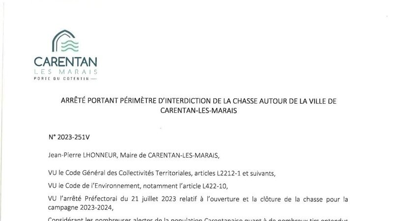 Cette pétition est contre le fait que dans la commune de Carentan les marais , la chasse soit réservée sur 15 parcelles communales a l’association La diane carentannaise est de ce fait ferme l’accès à tous autres chasseurs de cette commune de pratiquer paisiblement son loisir et dans de bonne condition ayant un environnement très restreint fautes de parcelles communales restantes . Cette pétition concerne également l’arrêté pris par MR le maire de Carentan qui impacte 12 communes également pour un problème spécifique qui ne devrait pas être réglé comme cela . les droit communaux doivent être les mêmes pour tous .