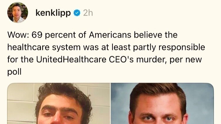 69 percent of Americans believe the healthcare system was at least partly responsible for the UnitedHealthcare CEO's murder, per new poll.