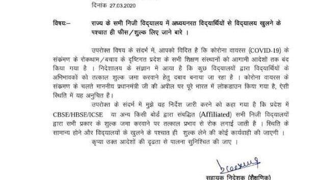 Dear All, Thank you for signing my petition. These are difficult times for the entire country. I'm happy to share that in a welcome step, the Haryana and Uttarakhand governments have direct ALL schools not to collect fee (any time charges) from the parents before schools reopen. This should be implemented in all states of India as the whole country is suffering and not just Haryana and Uttrakhand.
