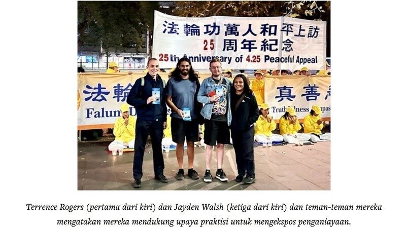 Seorang warga Sydney berkata, "Permohonan damai lebih dari 10.000 praktisi Falun Gong pada tanggal 25 April sangat berani dan mengagumkan; Ini adalah konsensus universal untuk perdamaian yang melampaui budaya yang berbeda; kami berharap untuk melihat pemerintah Australia berdiri melawan penganiayaan, dan berharap untuk melihat pemerintah kami dengan tegas menentang pengambilan organ hidup oleh PKT.