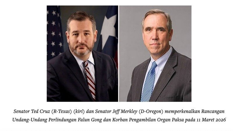 (Minghui.org) Senator Ted Cruz (R-Texas) dan Jeff Merkley (D-Oregon) memperkenalkan Rancangan Undang-Undang Perlindungan Falun Gong dan Korban Pengambilan Organ Paksa pada 11 Maret 2026. RUU bipartisan ini bertujuan untuk mengekang dan memberi sanksi pelaku kejahatan pengambilan organ paksa di Tiongkok.