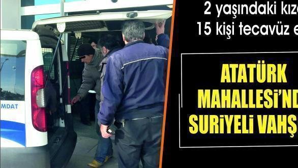 TORBALI’DA 2 yaşındaki Süha adlı kız çocuğuna 15 Suriyeli tecavüz etti. Olay yerinde vefat eden kız çocuğu, hastanede yapılan tüm müdahalelere rağmen hayata döndürülemedi. Korkunç olayla ilgili 8 kişi tutuklanıp cezaevine gönderilirken, olaya karışan 4 kişi daha her yerde aranıyor. Olay, önceki gün ilçede bulunan ve Suriyeli vatandaşların yoğun bir şekilde yaşadığı Atatürk Mahallesi’nde meydana geldi. Muhammed A. ve Helin A.’nın kızı 2 yaşındaki Süha A.’ya tecavüz eden 15 Suriyeli, daha sonra küçük kızı boğarak öldürdü.