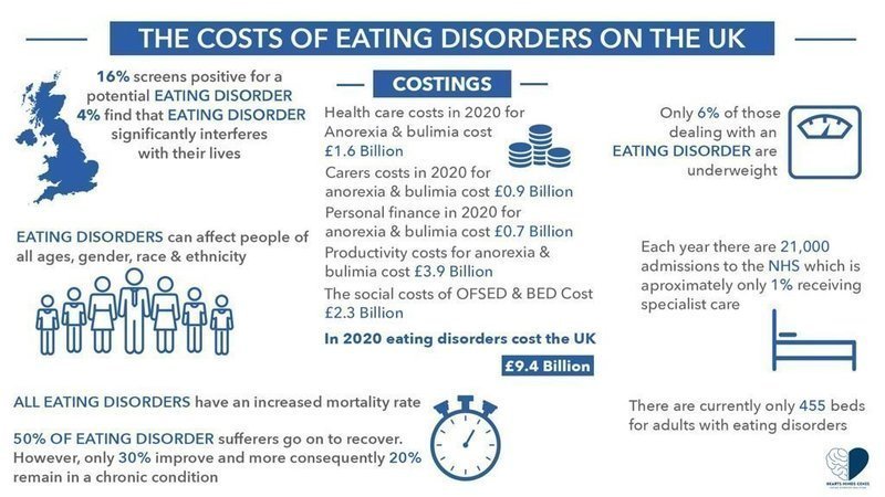 I am writing to you to share a copy of the Uk Cost of Eating Disorders Report that was released on Friday 24 September. The report was analysed by EY, was co-authored by Hope Virgo, Gerome Breen, Professor of Psychiatric Genetics at King’s College London, and Dr Agnes Ayton. It revealed that the costs of eating disorders on the UK could be as high as £9.4 billion in 2020.