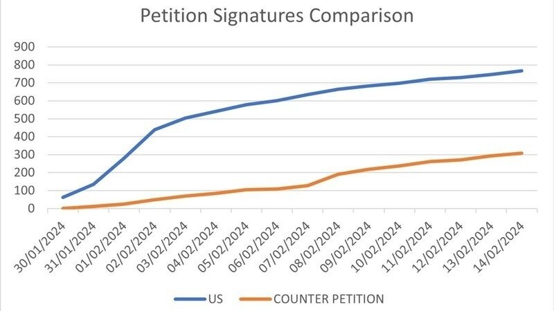 "With this in mind we wonder why the other petition is still going and what they are actually doing and asking for. Are their supporters especially their donators aware of this information? Are people donating to a petition which in effect appears to have ended? Are they going to try and reform the way public matters are decided by publically (sic) elected officials using legislated procedure to get their request fufilled? (sic) If so does this possibly undermine not only the public and publicly elected officials but also in effect rules - a process which they appear to advocate against?"
