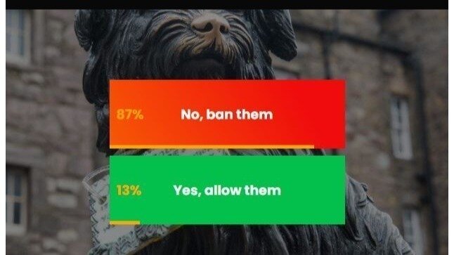 Firstly, let us us draw your attention to The Scotsman newspaper, which contains a handy voting system on banning dogs from cemeteries - as you can see from the photo above, the public has spoken with an overwhelmingly loud voice.