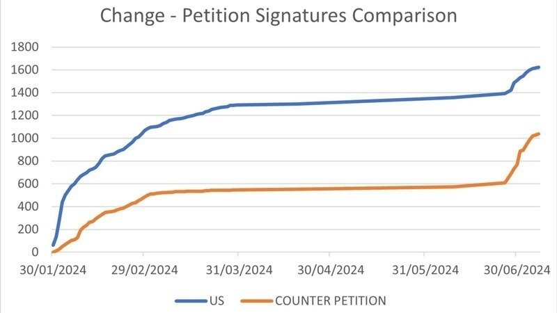 As you can see from the graph above, we still have a healthy lead over the counter petition, however that lead has decreased with recent press coverage.