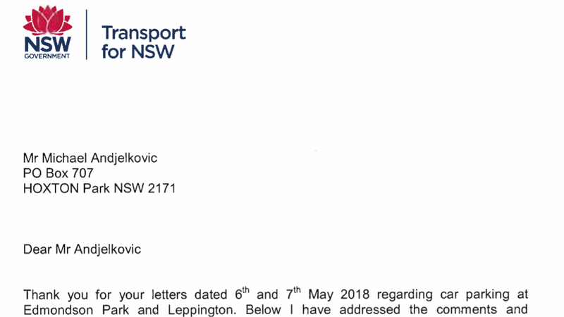 Thank you for your letters dated 6thand 7thMay 2018 regarding car parking at Edmondson Park and Leppington. Below I have addressed the comments and questions you raised.