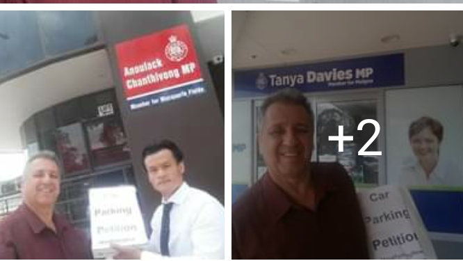 A Total of 5 Separate Car Parking Crisis Petitions were delivered to the 5 Local MP's listed below ready for Lodgement with the Clerk at Parliament House in Macquarie St Sydney.