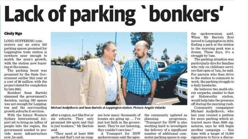 Community Campaigner Michael Andjelkovic, wjo last year created a petition for more Parking which has more than 8,000 signatures, says he will begin another campaign - this time with a target of 10,000 signatures to force a discussion in Parliament.