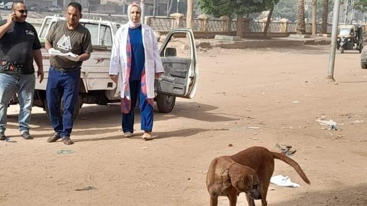 Here we see some Egyptian government agents who covertly put strychnine poison in dog food and distribute it to stray dogs to eat. These dogs are mostly starving so they eat this as they have no other food. They wear gloves and carefully place the poison on food they have within the plastic bags and must keep the poison from touching their own skin. They have the typical white pick up truck. Within a few minutes the poison starts to cause seizures and muscle rigidity. After that the dogs lung muscles slowly cease working causing the dogs to suffocate. In this day and age why Egypt continues to do this absurd and cruel way of controlling dog populations is difficult to comprehend. Egypt makes vast amounts of money from foreign tourists. It's not due to lack of money.