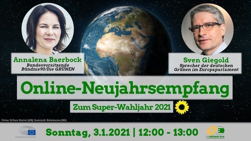 Seid dabei beim Online-Neujahrsempfang mit Annalena Baerbock, MdB und Bundesvorsitzende von Bündnis90/Die Grünen und Sven Giegold, MdEP und Sprecher der Europagruppe Grüne.