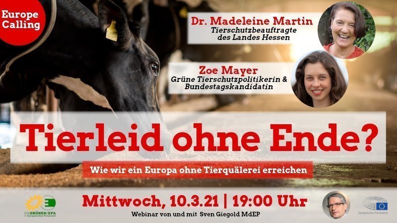 Deshalb möchte ich mit zwei Expertinnen diskutieren: Wie können wir das über Initiativen im Europaparlament und im Bundestag ändern? Wie machen wir das deutsche und europäische Recht zu einem tatsächlichen Hebel für artgerechte Tierhaltung?