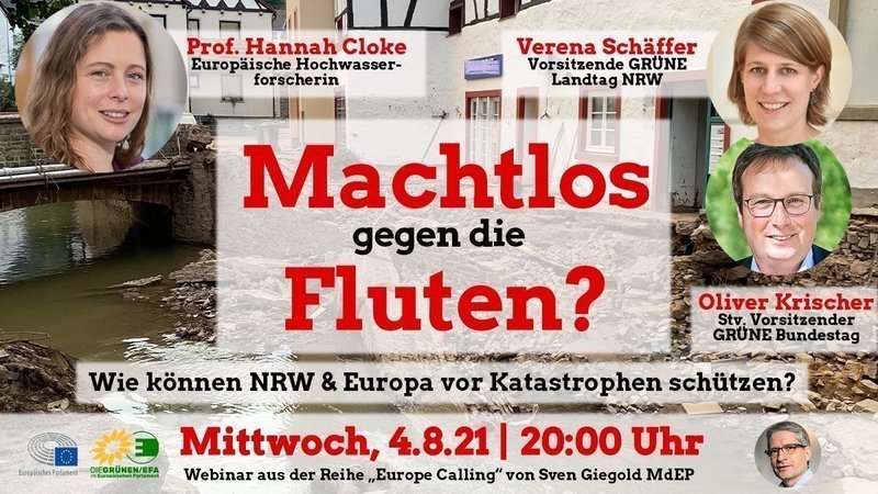 die Folgen der Hochwasser in NRW, Rheinland-Pfalz und weiteren Teilen Europas sind furchtbar. Weiterhin müssen wir alles tun, um den Betroffenen möglichst schnell zu helfen. Doch die Klimakrise wird in Zukunft zu immer häufigeren Extremwettern führen. Wenn wir nichts ändern, werden uns immer schlimmere Überschwemmungen treffen. Wie können wir uns also in Zukunft vor Hochwasser besser schützen? Wie können wir dafür sorgen, dass die Behörden die richtigen Schlüsse aus Wetterwarnungen ziehen und Warnmeldungen die Bevölkerung erreichen?