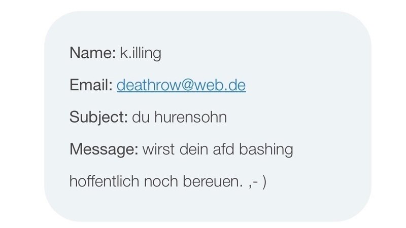 Er soll wissen, das ich mich von so etwas nicht einschüchtern lasse. Ich werde mit Tausenden Unterstützer*innen weiter das Ziel verfolgen, rechte Parteien verbieten zu lassen.