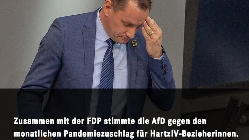 Die AfD hat zusammen mit der FDP gegen den monatlichen Pandemiezuschlag für Hartz IV Bezieher:innen gestimmt.