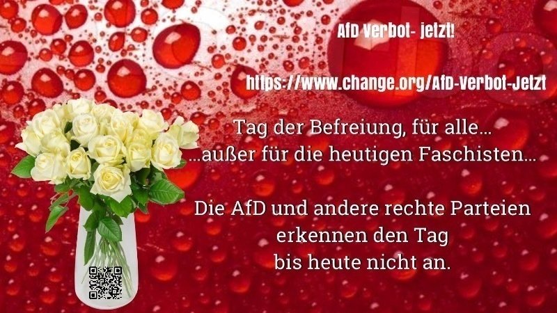 Seit nunmehr 78 Jahren gibt es wieder/noch immer Faschisten, die nicht wissen, oder einfach nicht wissen wollen, was an jenem 8. Mai passiert ist, sie leugnen es. Dass jeder einzelne von diesen Leuten damit auch den Holocaust verleugnet, scheint vielen absolut egal zu sein. Mir nicht.