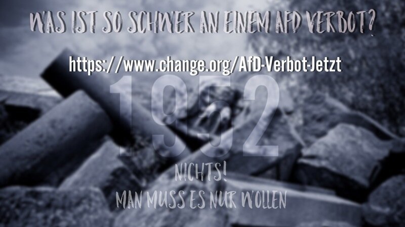 Daher bitte ich alle sich das im Anhang verlinkte Urteil/die Beschlussfassung, vom Bundesverfassungsgericht aus dem Jahre 1952 genau anzusehen und mit dem Verhalten der AfD oder anderer rechter Parteien zu vergleichen.