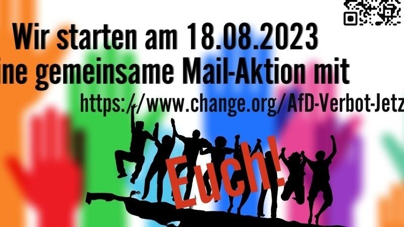es ist zeitnah geplant, das eine Mail-Aktion an die „demokratischen“ Parteien (SPD, Grüne, CDU/CSU, FDP und Linke) stattfindet. Starten möchten wir mit Euch zusammen am 18.08.2023.