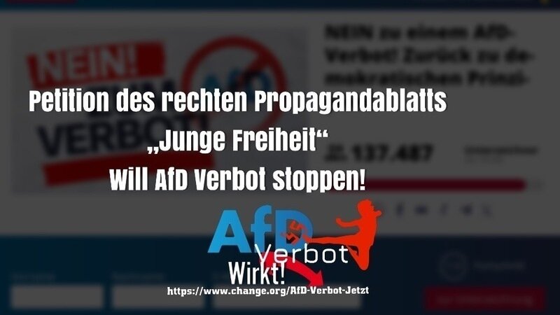 das rechte Propagandablatt "Junge Freiheit" fordert mit einer eigenen Petitionsseite "NEIN zu einem AfD-Verbot! Zurück zu demokratischen Prinzipien!"