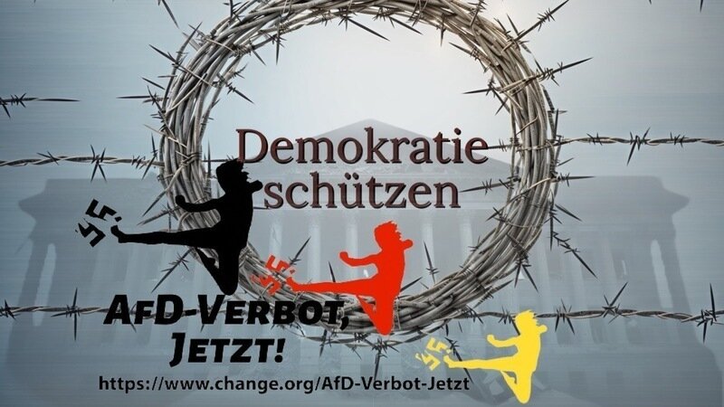 Ich bitte euch alle, die demokratischen Parteien durch die Unterzeichnung unserer Petition () zu einem AfD-Verbot unter Druck zu setzen. Je größer der öffentliche Druck wird, desto eher werden sich die Parteien für ein Verbot aussprechen.