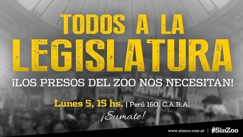 Este lunes 5 de Diciembre en la Legislatura Porteña a las 15 hs. se darán cita las 3 comisiones que tratarán los dos proyectos de Ley que tienen por objeto el zoo porteño, uno de ellos, presentado por el legislador Adrián Camps ve sus comienzos en el año 2012, y es el fruto del trabajo denodado de cientos de activistas y el acompañamiento de miles de vecinos de la ciudad. El otro es el proyecto del ejecutivo, lleno de largos grises y lagunas, e inclusive dos artículos donde se habla de vender los animales del zoo y en otro artículo de trasladarlos a destartalados zoos del interior del país.
