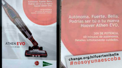 El último ejemplo lo encontramos esta Semana Santa, con el cartel que se ve en la imagen, y que saltó de inmediato a las redes sociales, a través de fotografías tomadas por distintas usuarias de la publicidad de El Corte Inglés. Vaya, resulta que yo soy yo, aunque también podría ser una escoba. “Autónoma. Fuerte. Bella”. Así define El Corte Inglés a sus escobas “sin cables”, y también a las mujeres.