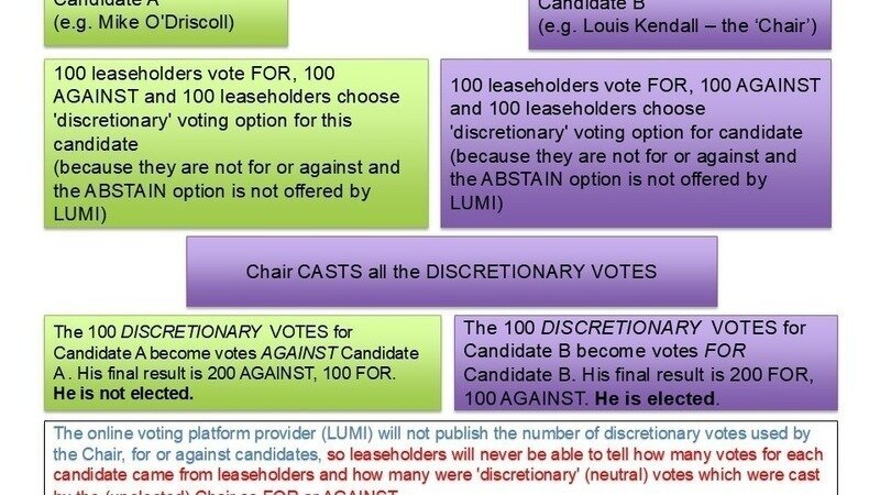 There has been no meeting of candidates in these elections and again Urang and the current directors refused to say why that was. I have detailed here how this election has been manipulated especially through the use of discretionary votes but also through a general lack of opputuniteis for leaseholders to engage.