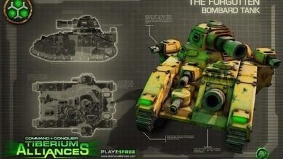 One of the major military units in the game, not so appropriately labeled the Forgotten Bombard Tank, is actually plagiarized from the intellectual property of Games Workshop Group plc, a British game production company. The physical appearance of the Forgotten Bombard Tank is almost entirely lifted from the the Baneblade, a classic armored unit belonging to the Imperial Guard faction of the Warhammer 40K universe owned by Games Workshop. The Forgotten Bombard Tank featured prominently in advertising for Tiberium Alliances, to the extent of being used in downloadable wallpaper.