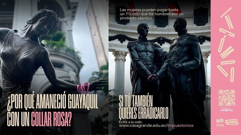 Mira el reportaje que Ecuavisa hizo de la campaña #CollarIncómodo aquí: ¿Qué hay detrás de los collares rosas en las esculturas de Guayaquil?