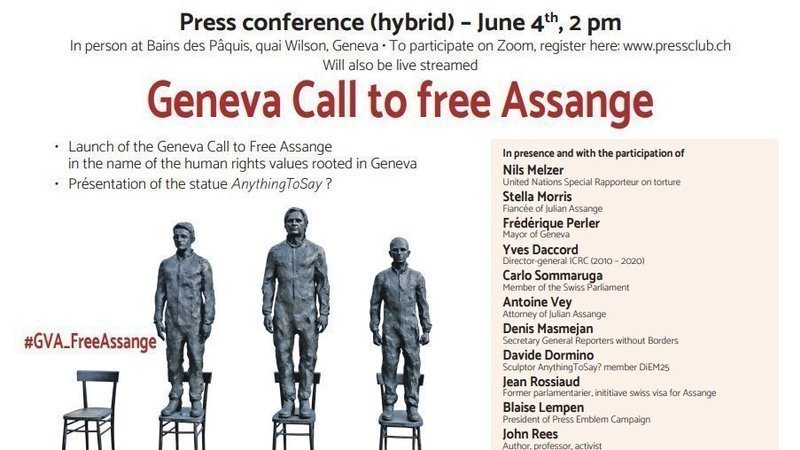 The Geneva Appeal to free Assange, which includes six demands, will be made public and open for signature on June 4 at www.pressclub.ch.
