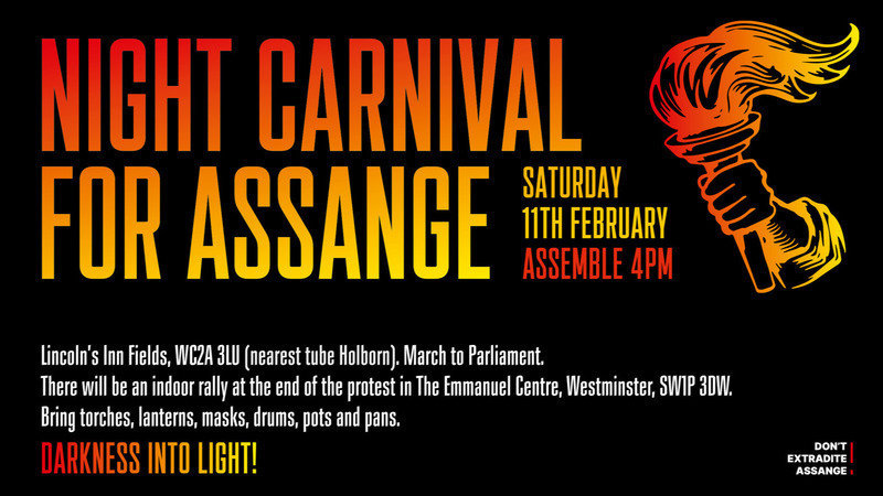 After a successful #FreeAssange #HumanChain event last October we are going to take the streets of London for a Night Carnival. Bring torches, lanterns, masks, drums, pots and pans!